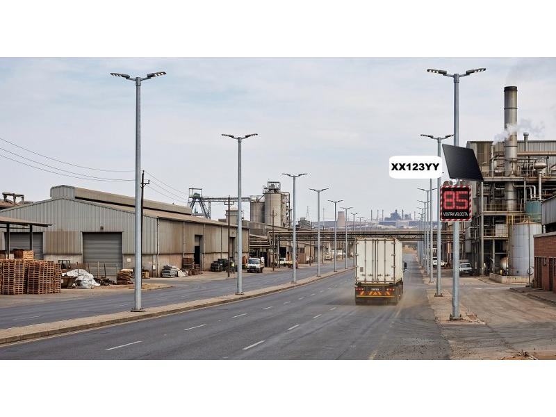 Il sistema integrato DOINGPRO per la viabilità interna industriale prevede singoli punti di misura composti da un pannello a messaggio variabile (che mostra la velocità istantanea del veicolo in tempo reale), una telecamera ANPR integrata per la lettura automatica della targa, un router che trasmette ogni evento di velocità in eccesso al server centrale.